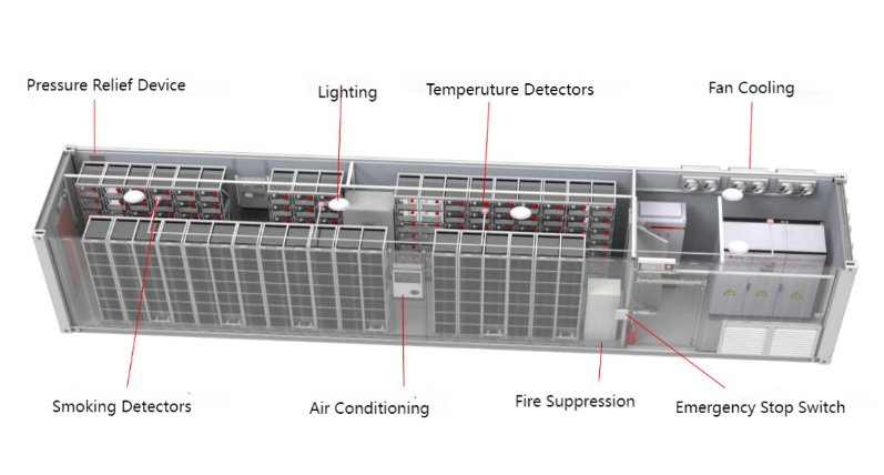 l Multi-Dimensional Detection: Integrated sensors monitor ambient temperature in the battery compartment, while VESDA or photoelectric smoke detectors enable ultra-early smoke detection.